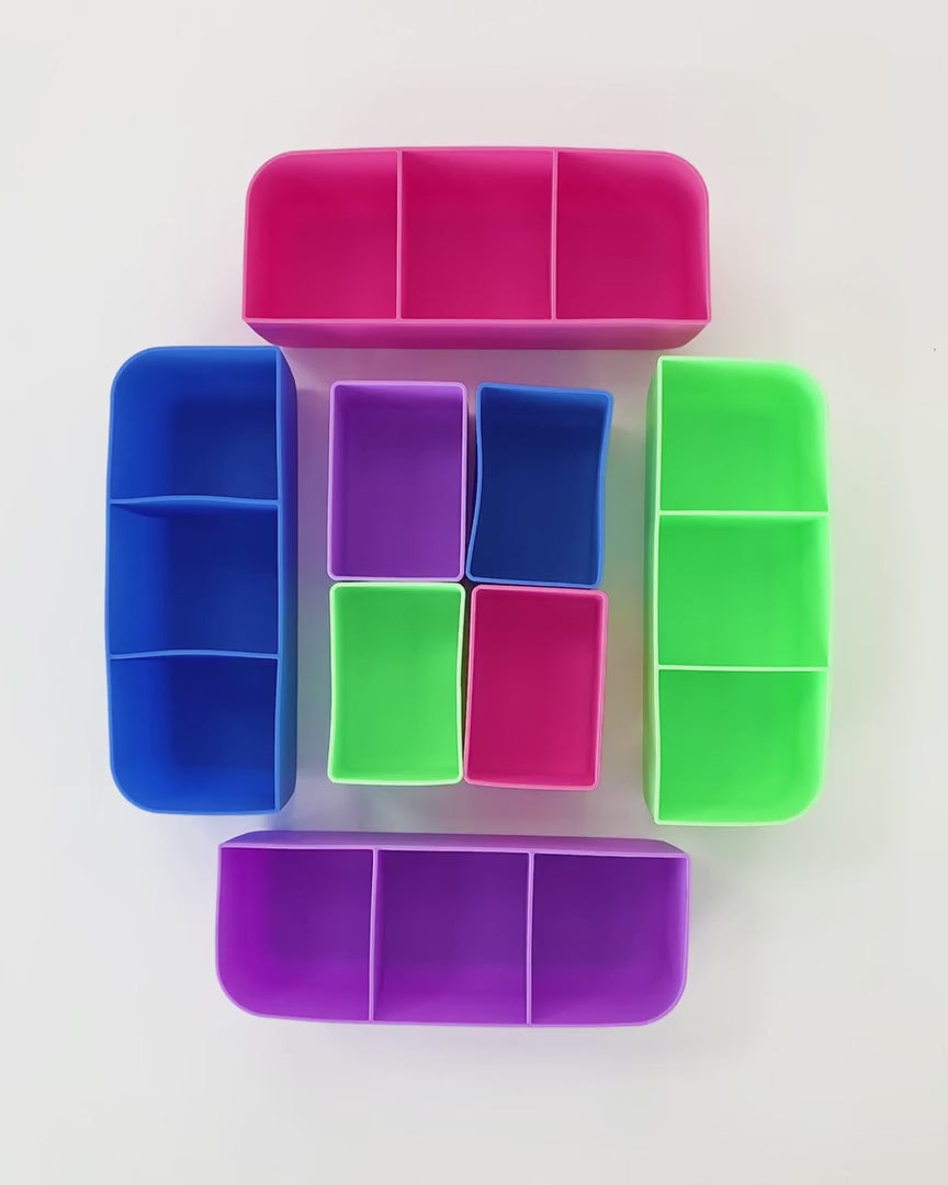 Ez a szilikon tálca a Feast uzsonnásdobozhoz készült, így könnyedén több rekeszt kialakíthatsz benne, és elkülönítheted a kisebb adagokat, hogy változatos ételeket csomagolhass!